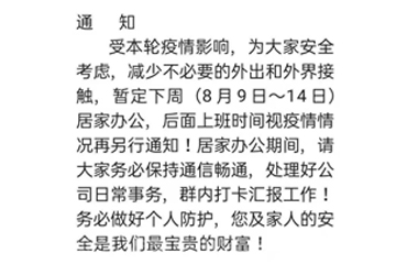2021年8月7日,因?yàn)橐粓?chǎng)突如其來(lái)的疫情武漢市江夏區(qū)按下了暫停鍵。如晴天霹靂,所以得計(jì)劃不能如期進(jìn)行,這個(gè)疫情就像一個(gè)煙花隨時(shí)都會(huì)爆發(fā),給我們的生活工作帶來(lái)了很多困擾接上級(jí)領(lǐng)通知,依客思積極配合疫情防控。